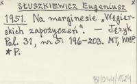 SŁUSZKIEWICZ Eugeniusz 1951 Na marginesie "Węgierskich zapożyczeń".