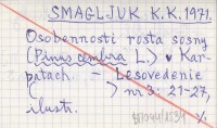 SMAGLJUK K. K. 1971 Osobennosti rosta sosny (Pinus cembra L.) v Karpatach.