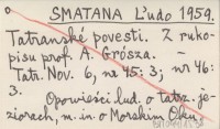 SMATANA Ľudo 1959 Tatranské povesti. Z rukopisu prof. A. Grósza.