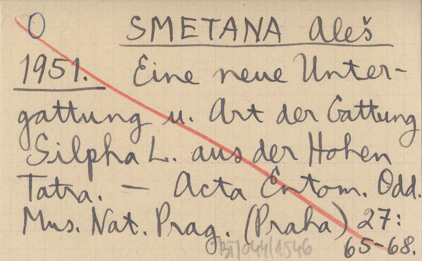 SMETANA Aleš 1951 Eine neue Untergattung u. Art der Gattung Silpha L. aus der Hohen Tatra.