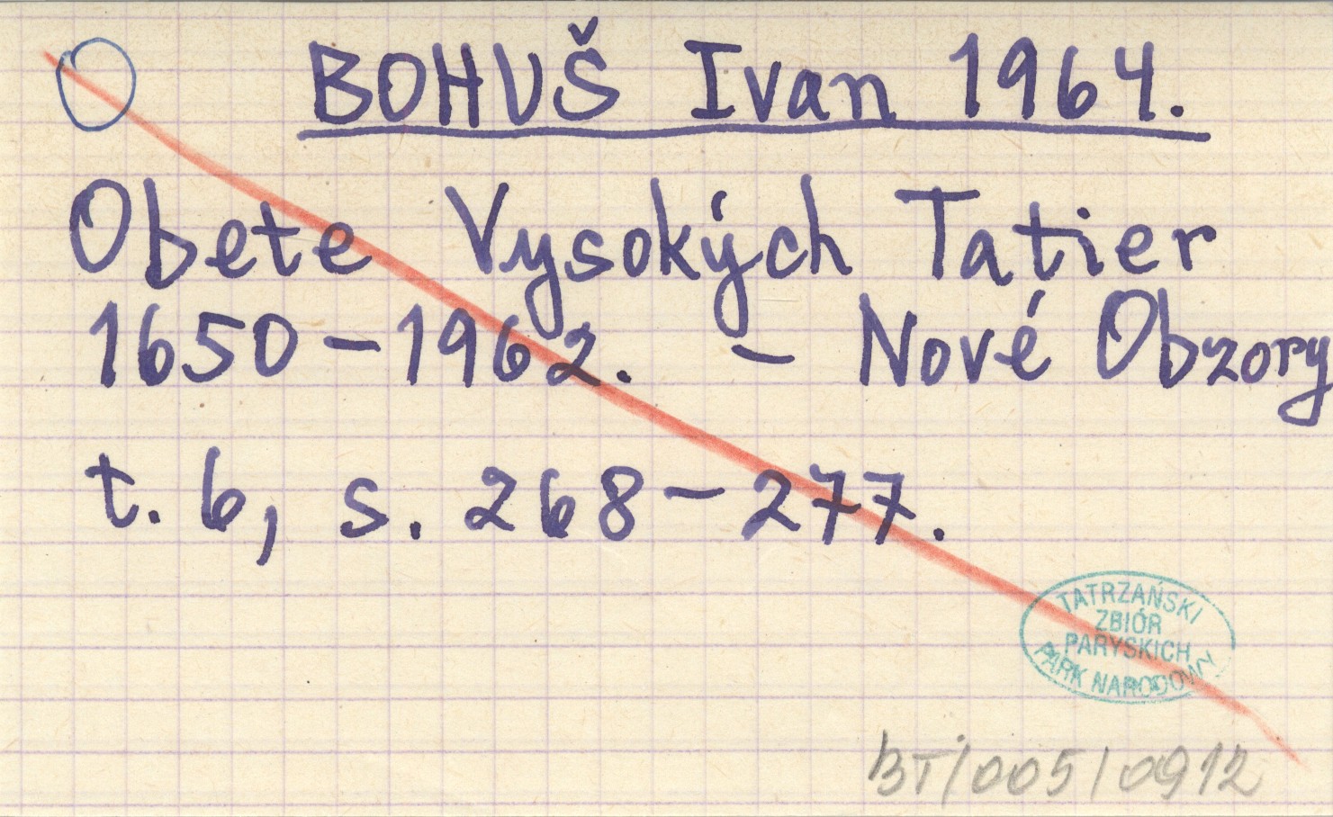 Obete Vysokęch Tatier 1650-1962.