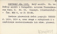 SMETANAY Ján 1903 Malý archív. Uh. kr. štátny archív v Budapešti. Actorum Thurzoianorum fasc. 2. Nr 55. Concept. (vlastoručný).
