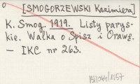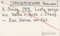 K. Smog. [SMOGORZEWSKI Kazimierz] 1919 Listy paryskie. Walka o Spisz i Orawę.
