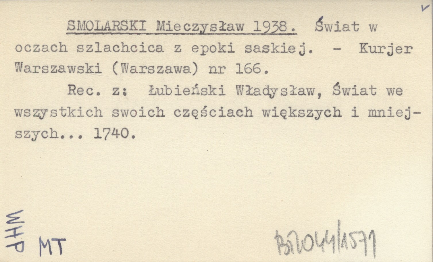 SMOLARSKI Mieczysław 1938 Świat w oczach szlachcica z epoki saskiej.