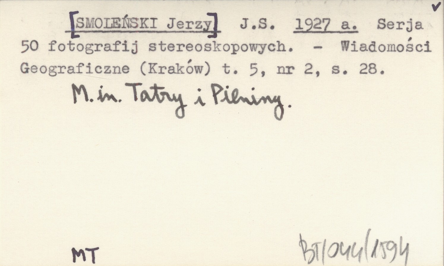 J. S. [SMOLEŃSKI Jerzy] 1927 a Serja 50 fotografji stereoskopowych.