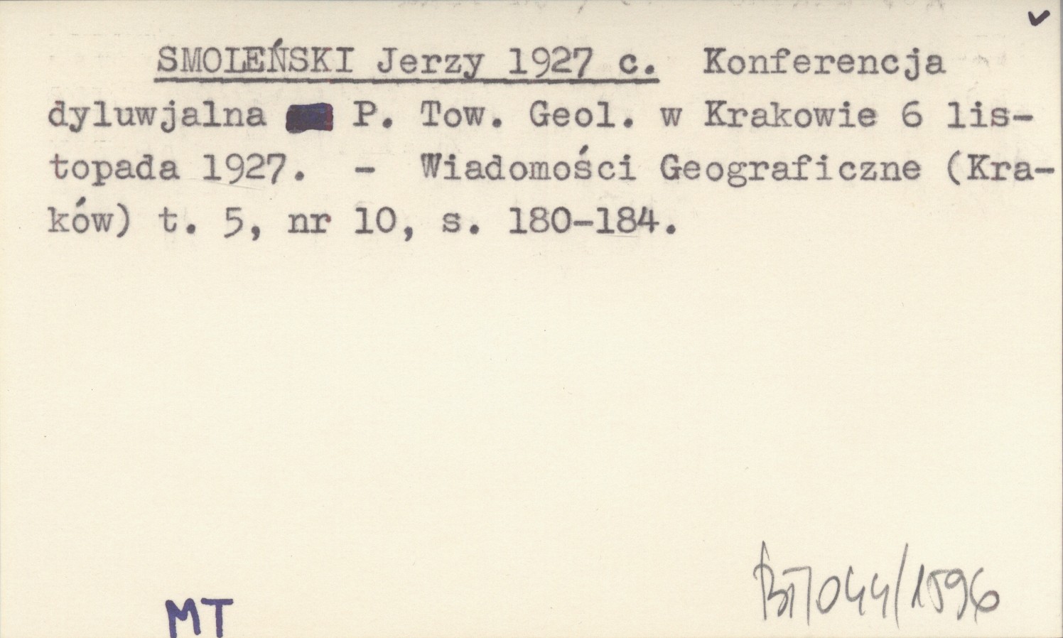 SMOLEŃSKI Jerzy 1927 c Konferencja dyluwjalna P. Tow. Geol. w Krakowie 6 listopada 1927.