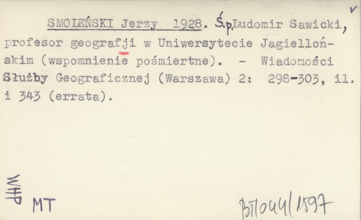 SMOLEŃSKI Jerzy 1928 Ś.p. Ludomir Sawicki, profesor geografji w Uniwersytecie Jagiellońskim (wspomnienie pośmiertne).