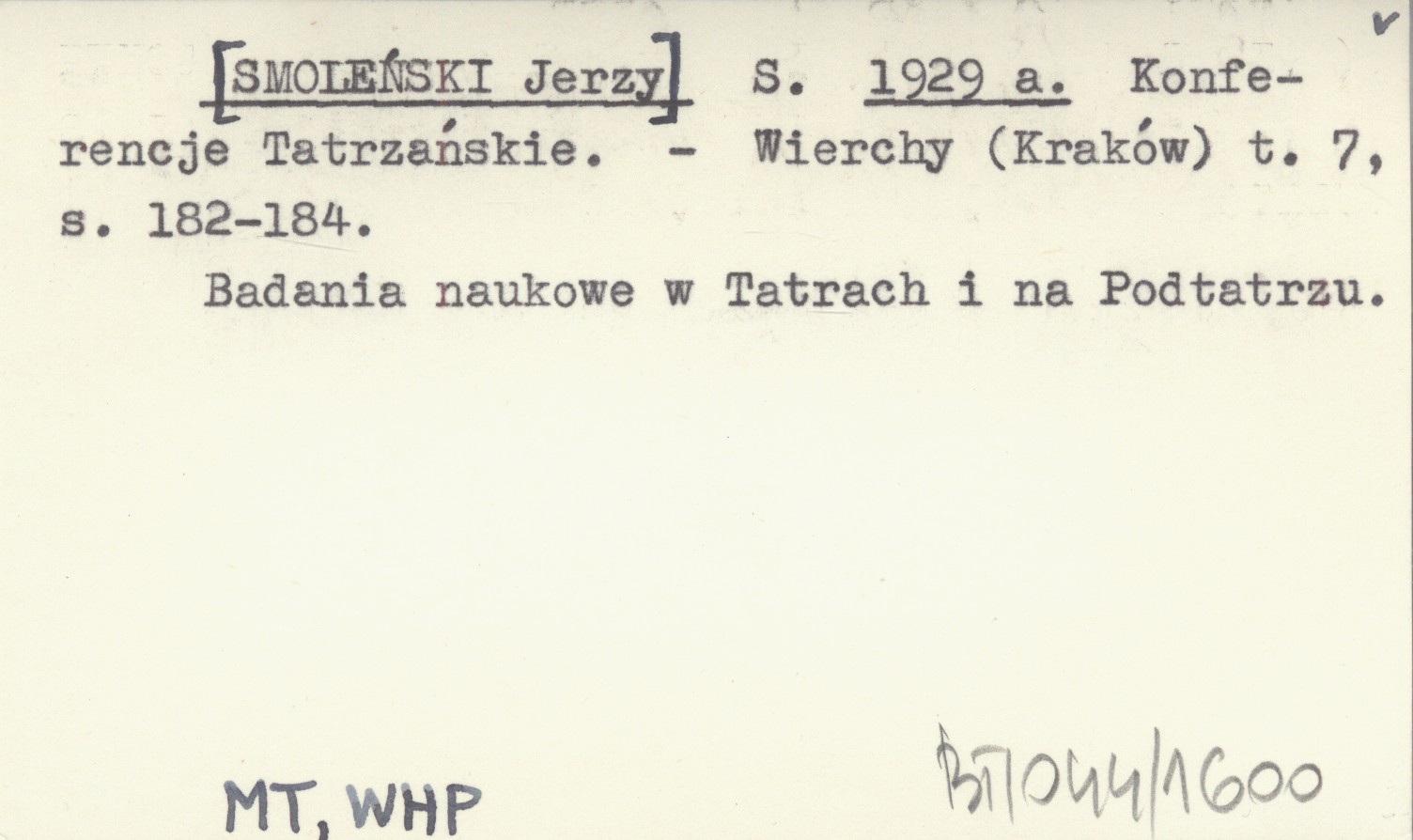Wierchy (Kraków) , T. 7: 182-184. Badania naukowe w Tatrach i na Podtatrzu.