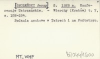 S. [SMOLEŃSKI Jerzy] 1929 a Konferencje Tatrzańskie.