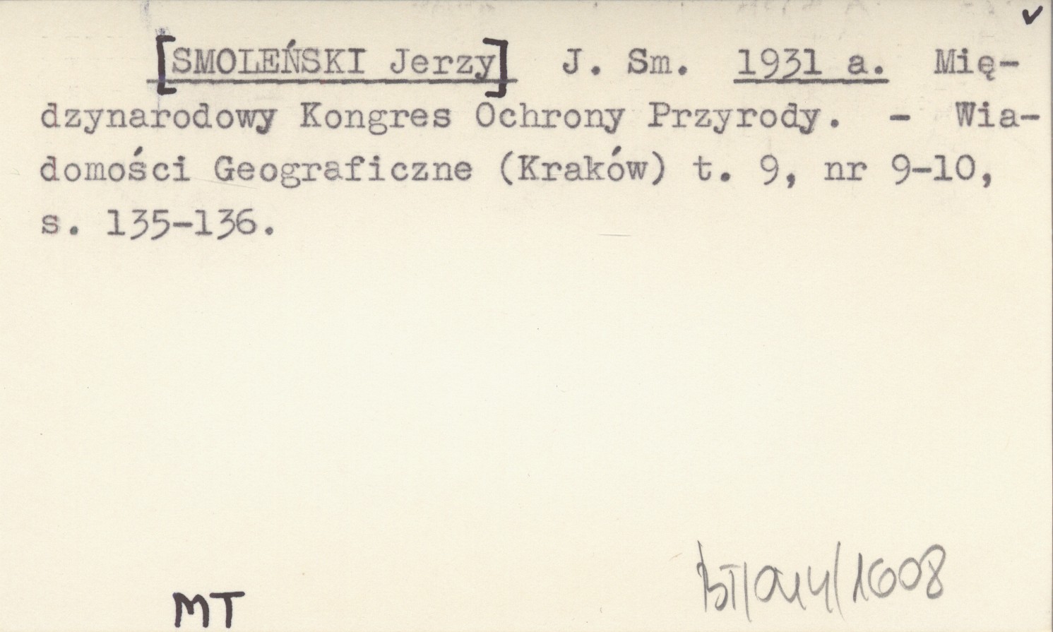 J. Sm. [SMOLEŃSKI Jerzy] 1931 a Międzynarodowy Kongres Ochrony Przyrody.