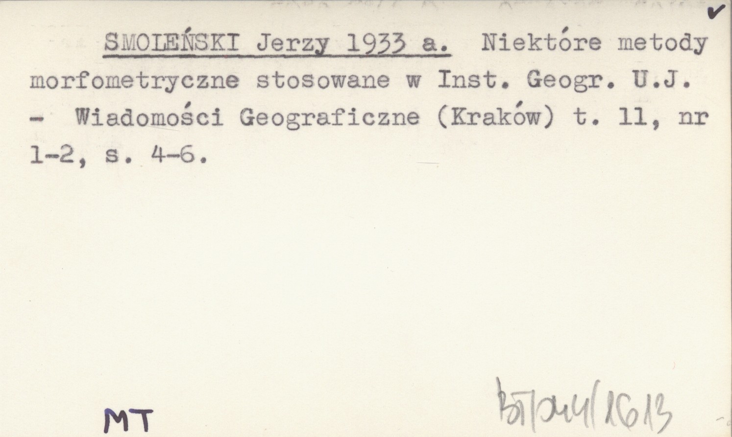 SMOLEŃSKI Jerzy 1933 a Niektóre metody morfometryczne stosowane w Inst. Geogr. U. J.