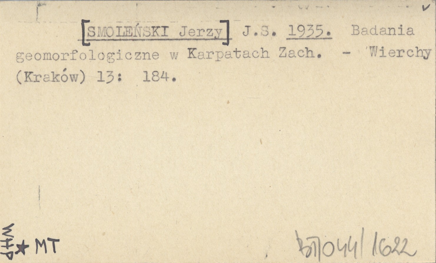 J. S. [SMOLEŃSKI Jerzy] 1935 Badania geomorfologiczne w Karpatach Zach.