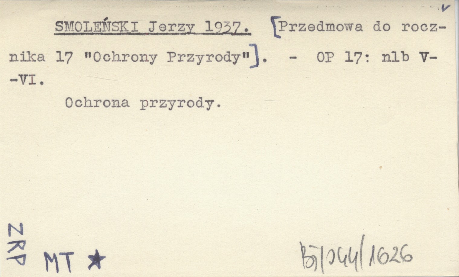 SMOLEŃSKI Jerzy 1937 [Przedmowa do rocznika 17 "Ochrony Przyrody".]