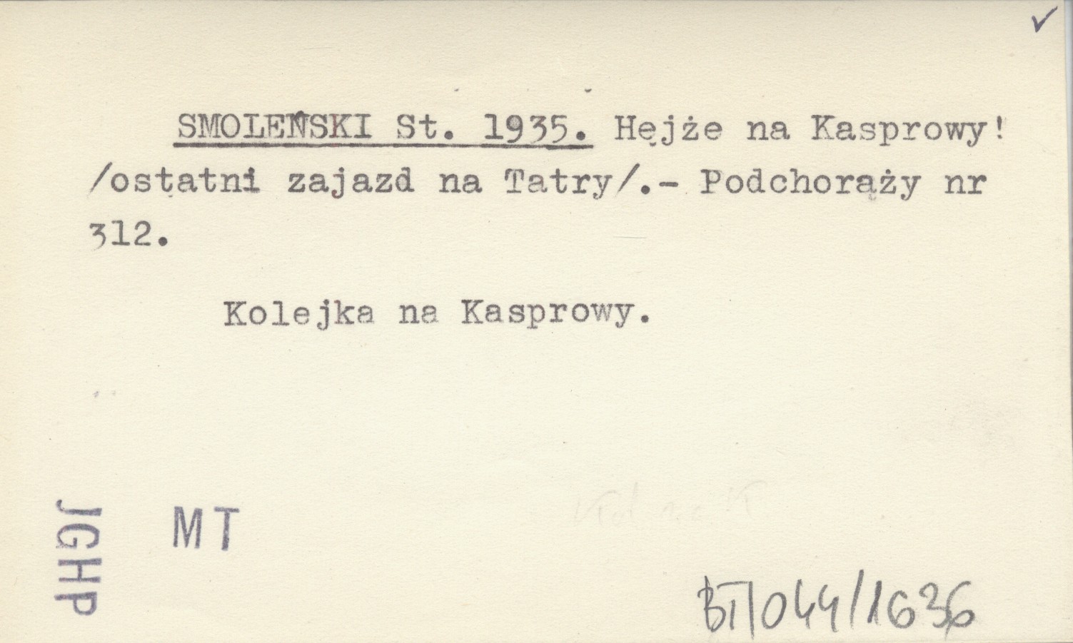 SMOLEŃSKI St. 1935 Hejże na Kasprowy! (ostatni zajazd na Tatry).