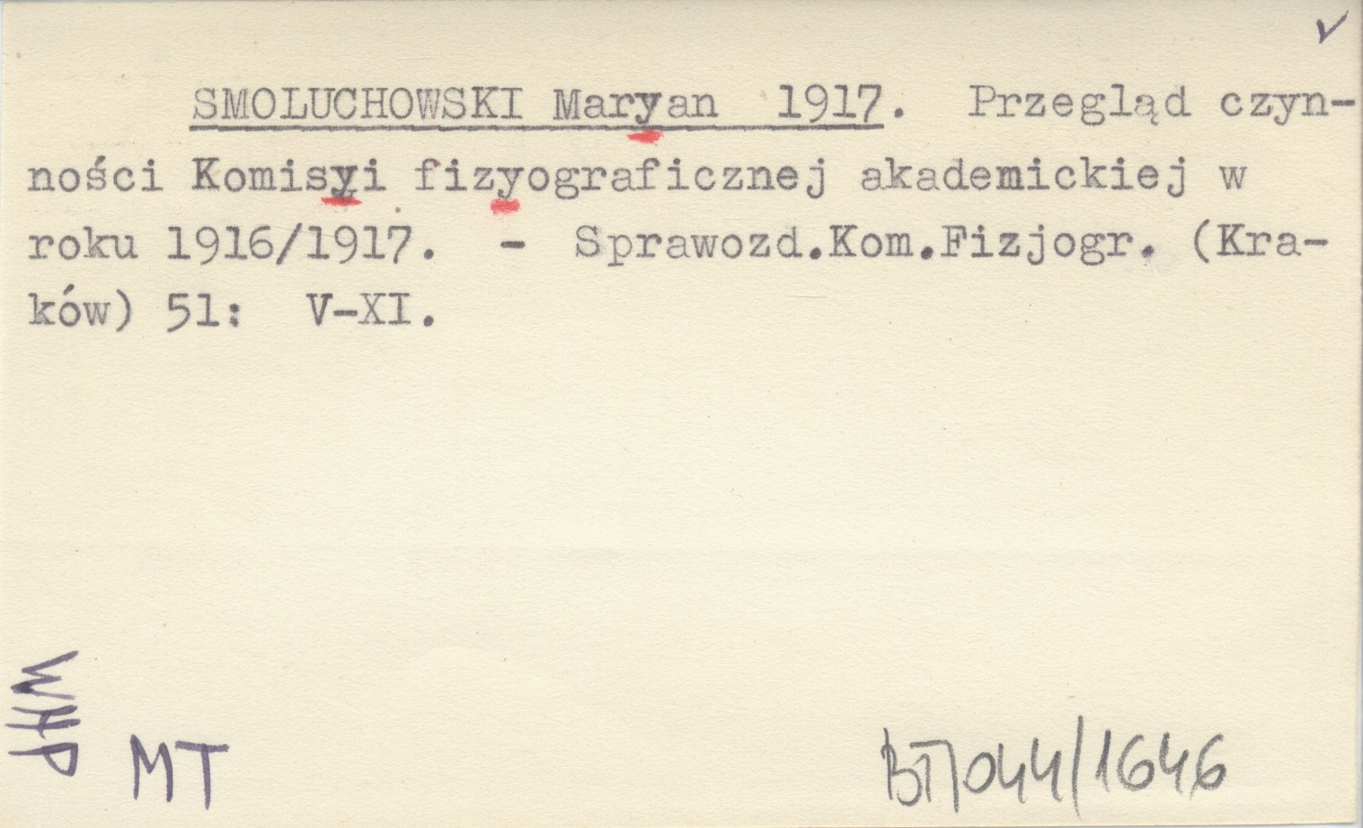 SMOLUCHOWSKI Maryan 1917 Przegląd czynności Komisyi fizyograficznej akademickiej w roku 1916/17.