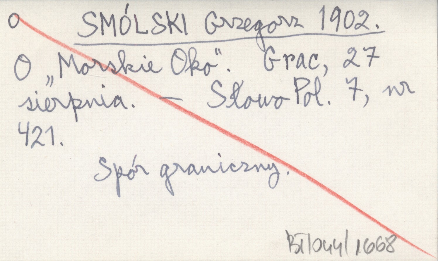 SMÓLSKI Grzegorz 1902 O "Morskie Oko". Grac, 27 sierpnia.