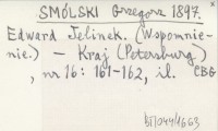 SMÓLSKI Grzegorz 1897 Edward Jelinek. (Wspomnienie).