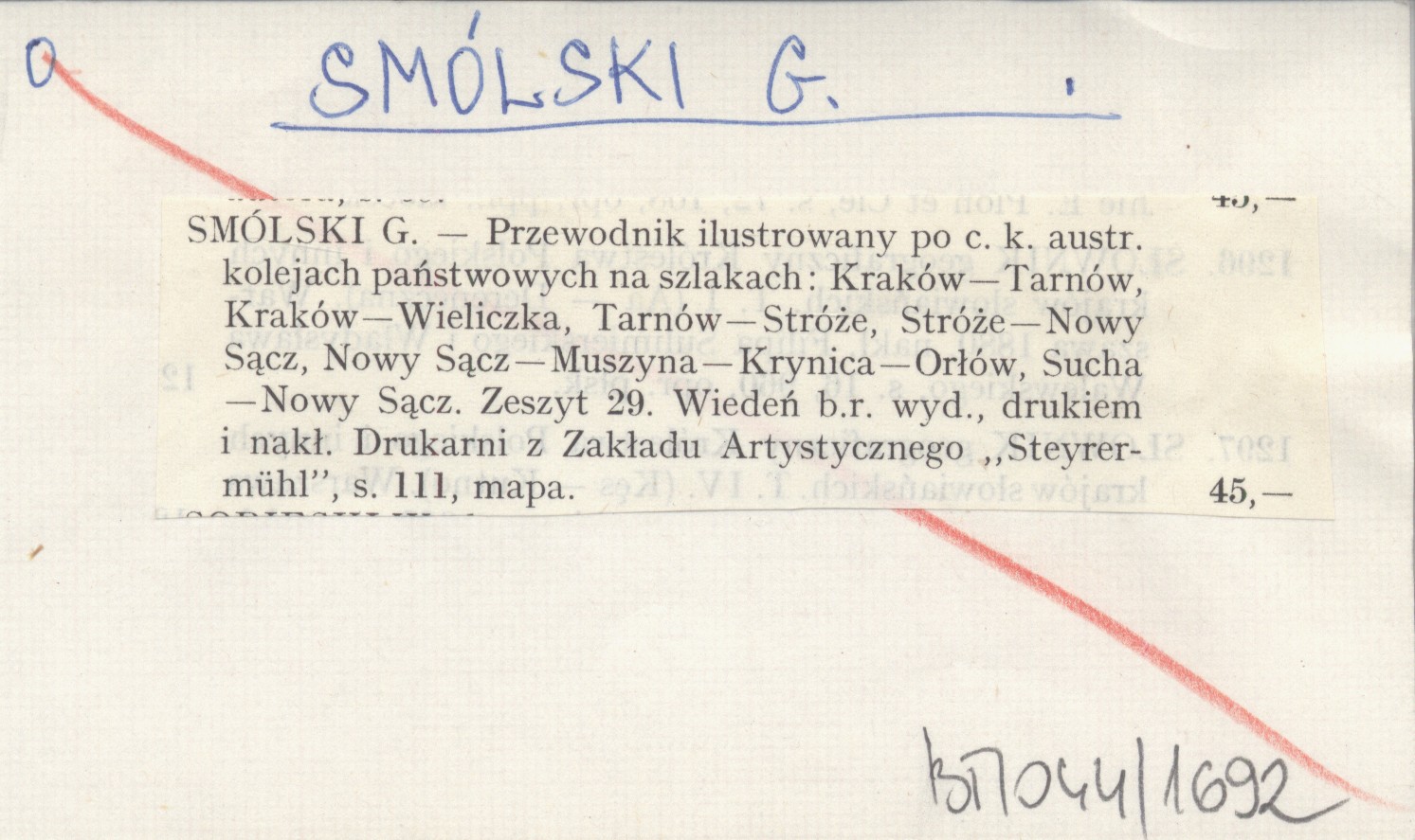 SMÓLSKI G. Przewodnik ilustrowany po c.k. austr. kolejach państwowych na szlakach: Kraków-Tarnów, Kraków-Wieliczka, Tarnów-Stróże, Stróże-Nowy Sącz, Nowy Sącz-Muszyna-Krynica-Orłów, Sucha-Nowy Sącz.