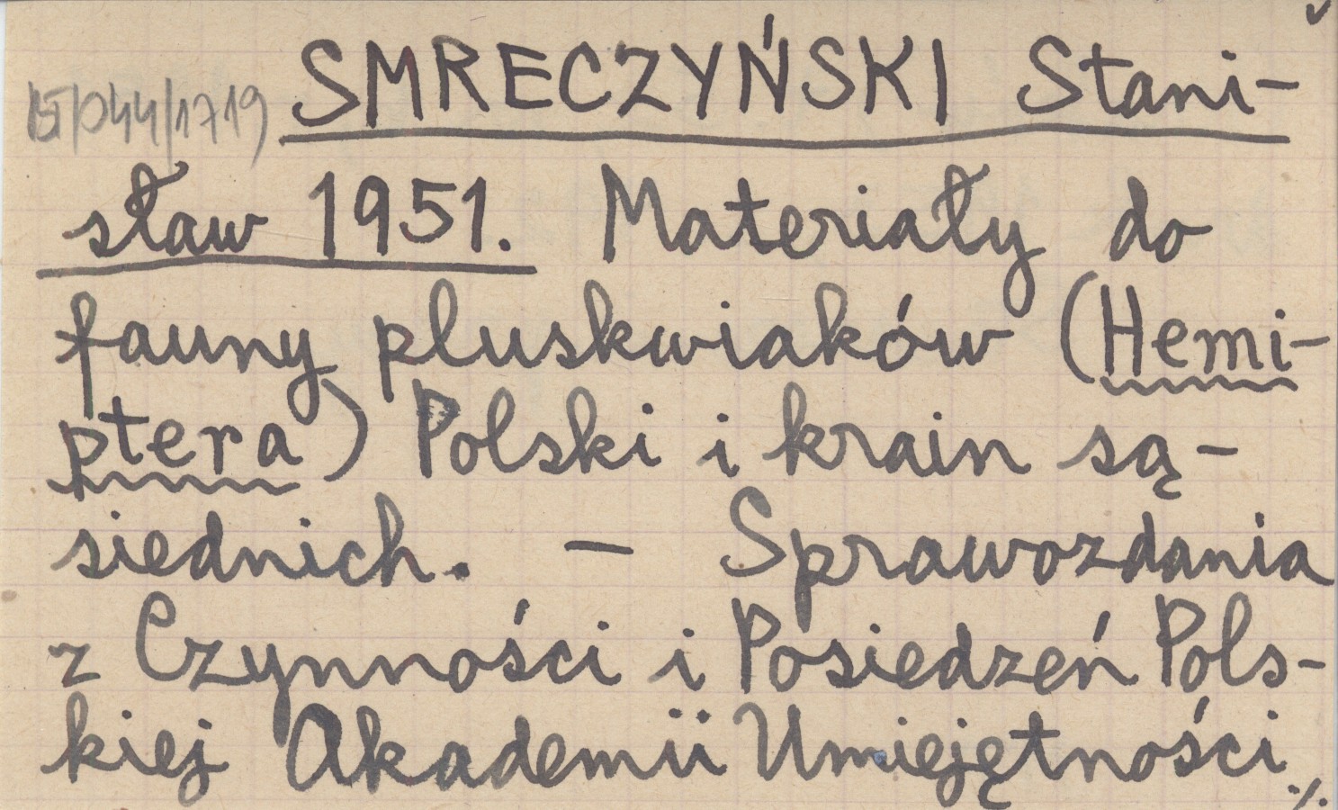 SMRECZYŃSKI Stanisław 1951 Materiały do fauny pluskwiaków (Hemiptera) Polski i krain sąsiednich.