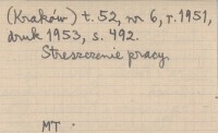Sprawozdania z Czynności i Posiedzeń Polskiej Akademii Umiejętności (Kraków) , T. 52, nr 6 (1951, druk 1953): 492. Streszczenie pracy.