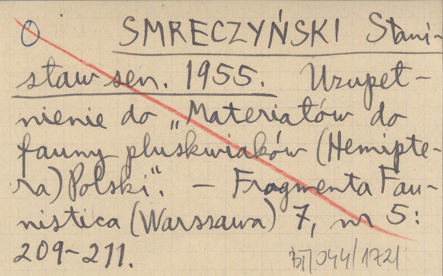 SMRECZYŃSKI Stanisław sen. 1955 Uzupełnienie do "Materiałów do fauny pluskwiaków (Hemiptera) Polski".