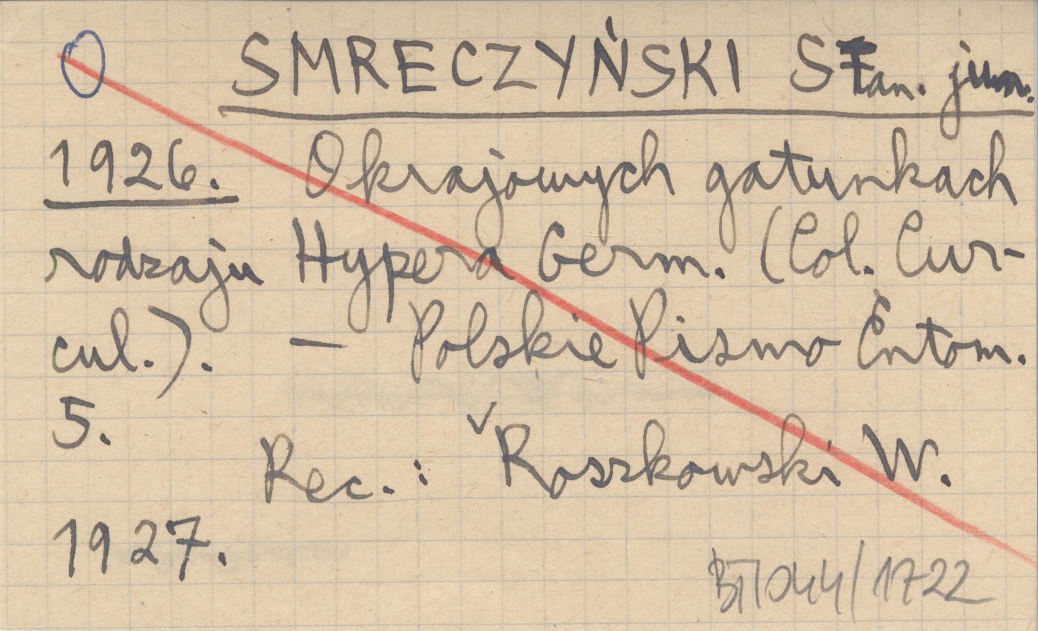 SMRECZYŃSKI Stanisław jun. 1926 O krajowych gatunkach rodzaju Hypera Germ. (Col. Cur-cul.).