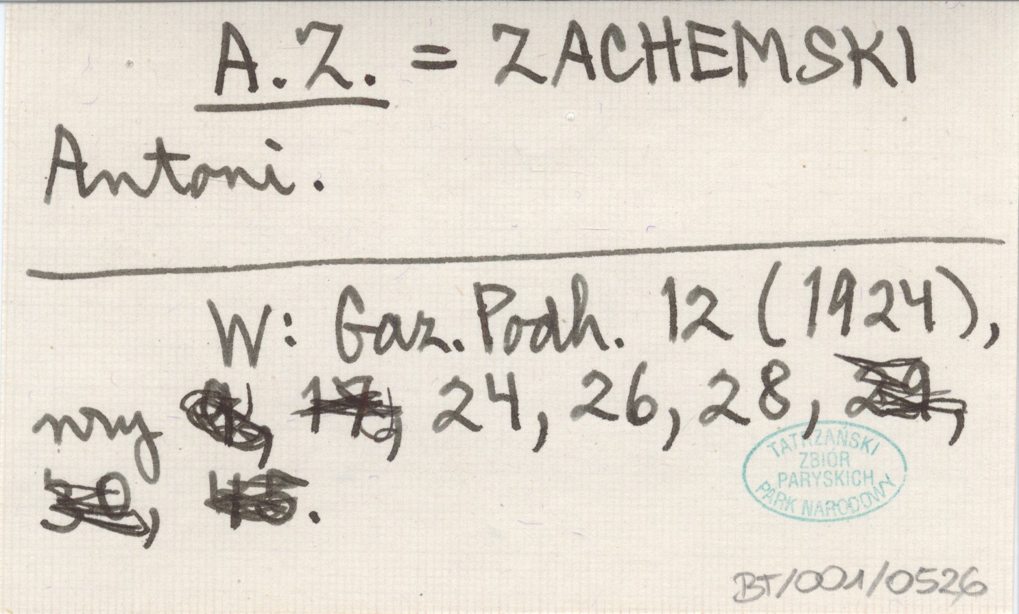 A. Z. ZACHEMSKI Antoni Gazeta Podhalańska 12 (1924), nr 24, 26, 28.