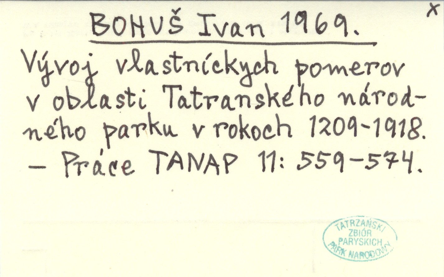 BOHUŠ Ivan 1969 Vývoj vlastníckych pomerov v oblasti Tatranského národného parku v rokoch 1209-1918.