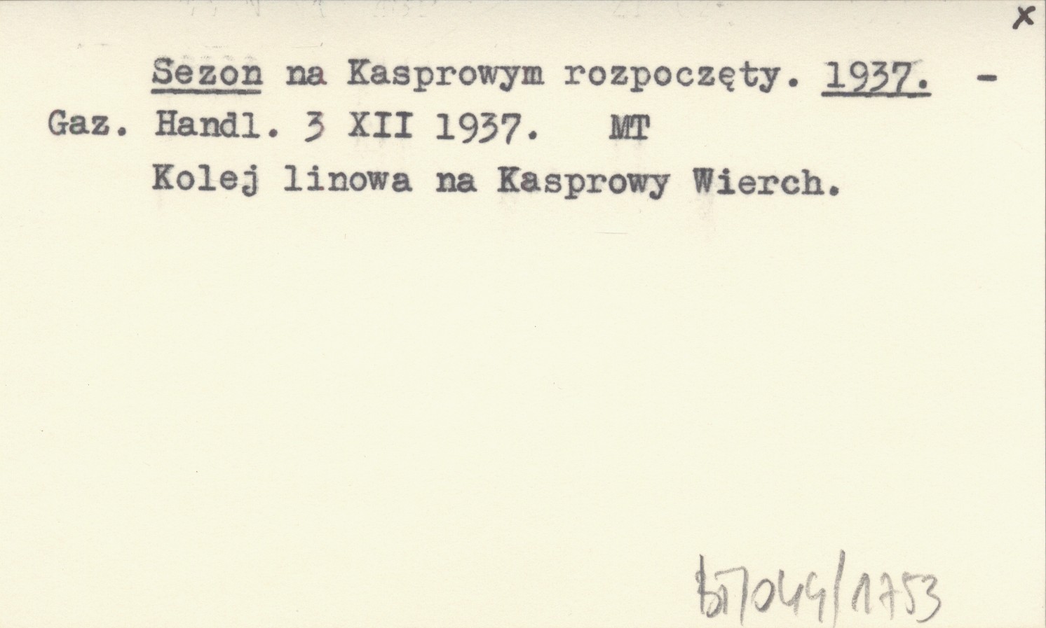 Gazeta Handlowa, 3 XII 1937. Kolej linowa na Kasprowy Wierch.