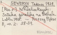 SEWERYN Tadeusz 1929 [Rec. o:] Konstanty Kietlicz-Rayski: Sztuka góralska na Podhalu. Lublin 1928.