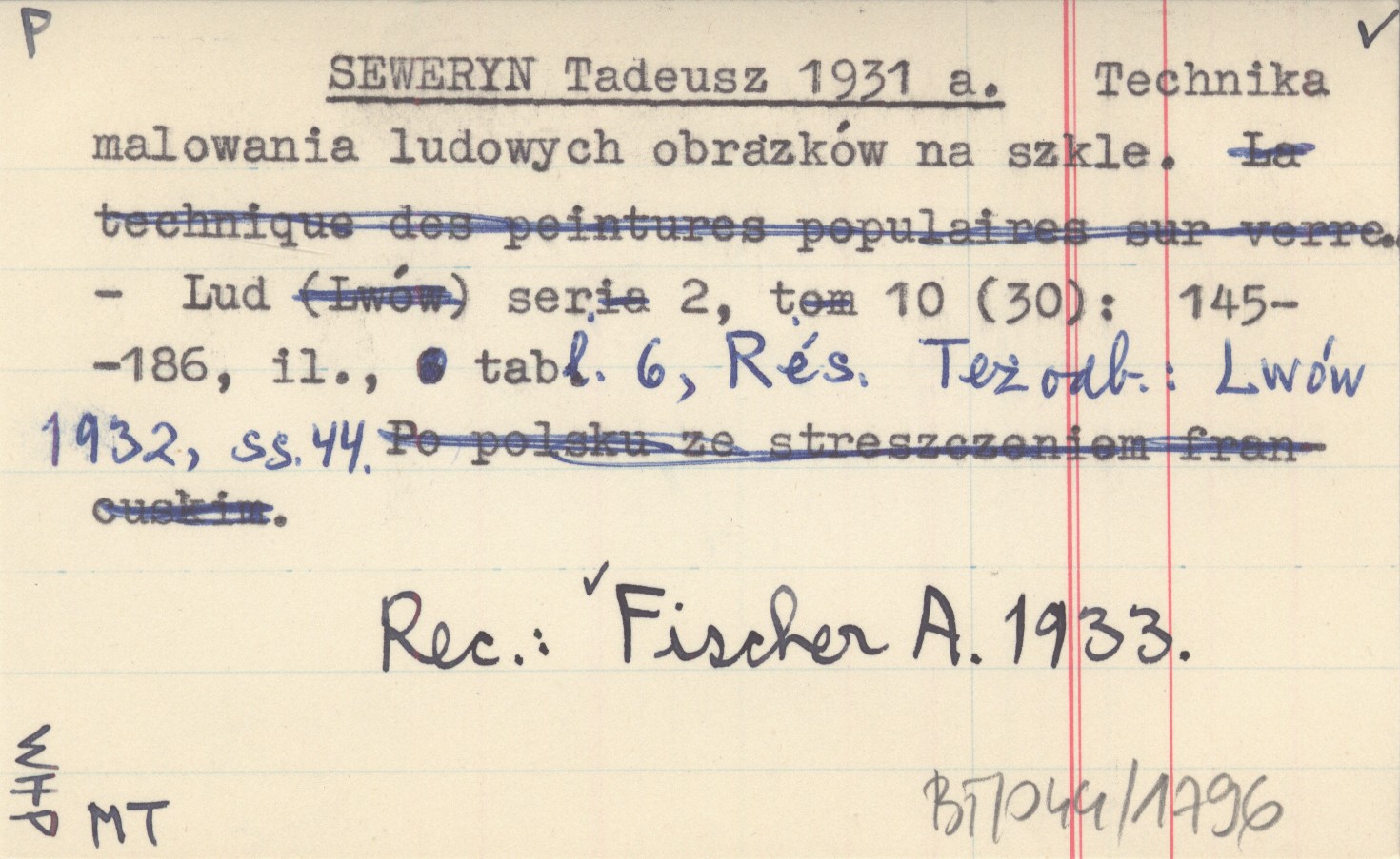 Lud, Ser. 2, t. 10 (30): 145-186, il., 6 k., Rés. Też odb.: Lwów 1932, 44 s. REC: FISCHER A. 1933