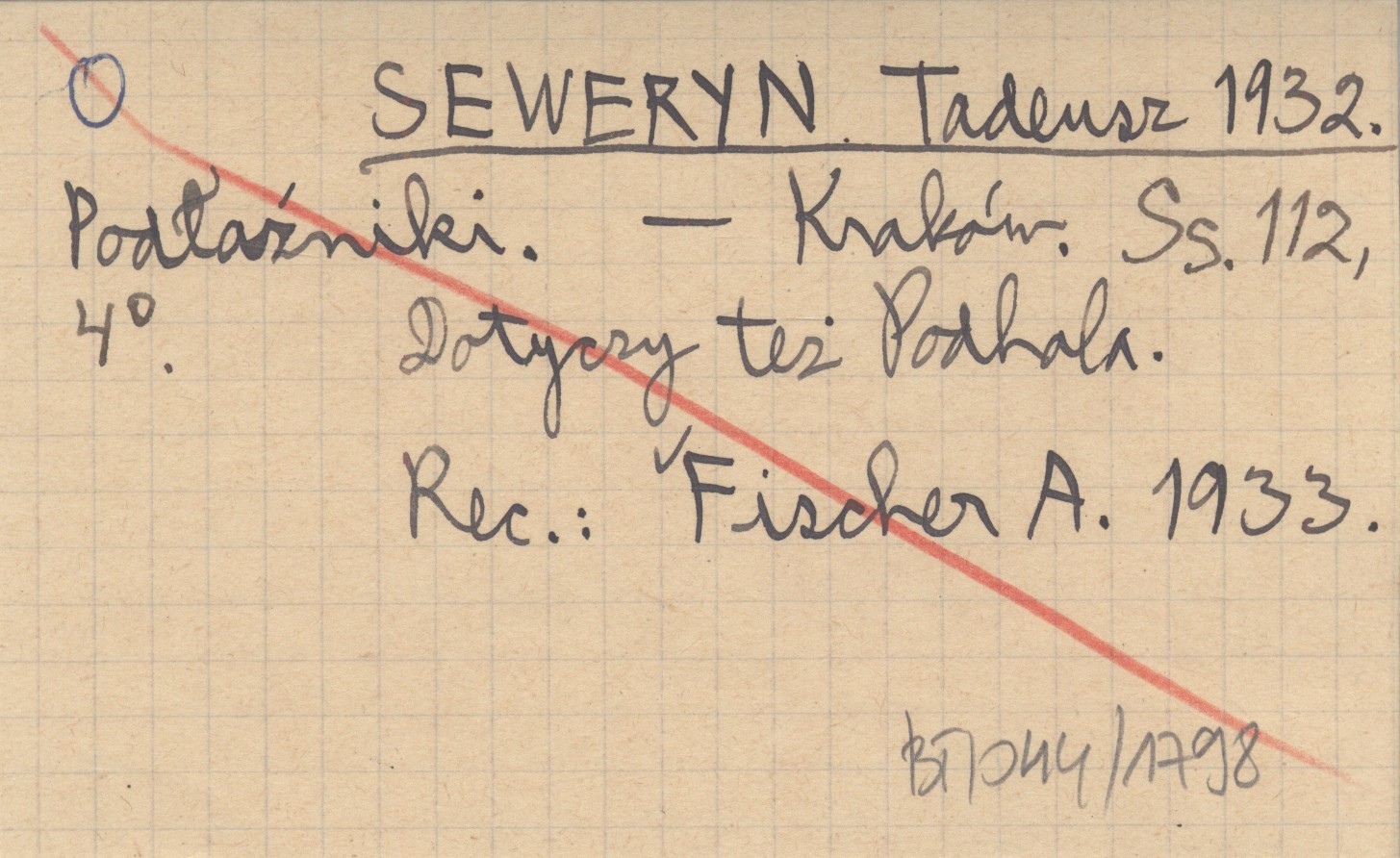 Kraków , 112 s., 4°. Dotyczy też Podhala. REC: FISCHER A. 1933