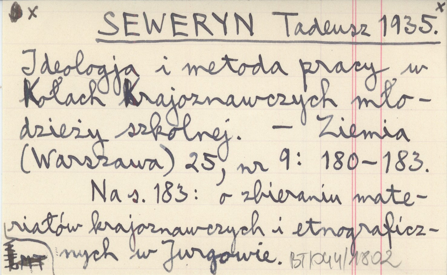 SEWERYN Tadeusz 1935 Ideologja i metoda pracy w Kołach Krajoznawczych młodzieży szkolnej.