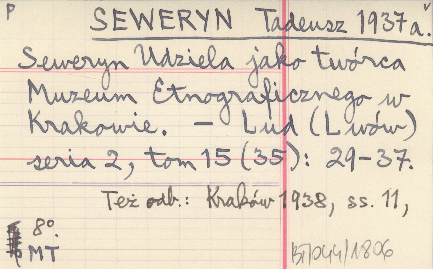 SEWERYN Tadeusz 1937 a Seweryn Udziela jako twórca Muzeum Etnograficznego w Krakowie.