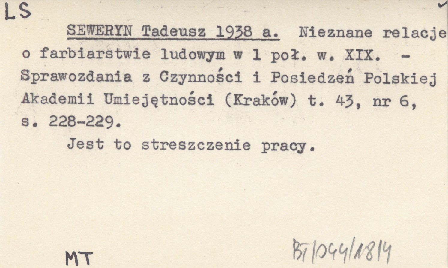 SEWERYN Tadeusz 1938 a Nieznane relacje o farbiarstwie ludowym w 1 poł. w. XIX.
