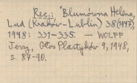 REC: BLUMÓWNA Helena, Lud (Kraków-Lublin) 38 (1947), 1948: 331-335 ; WOLFF Jerzy, Głos Plastyków 9 (1948): 87-90 ;