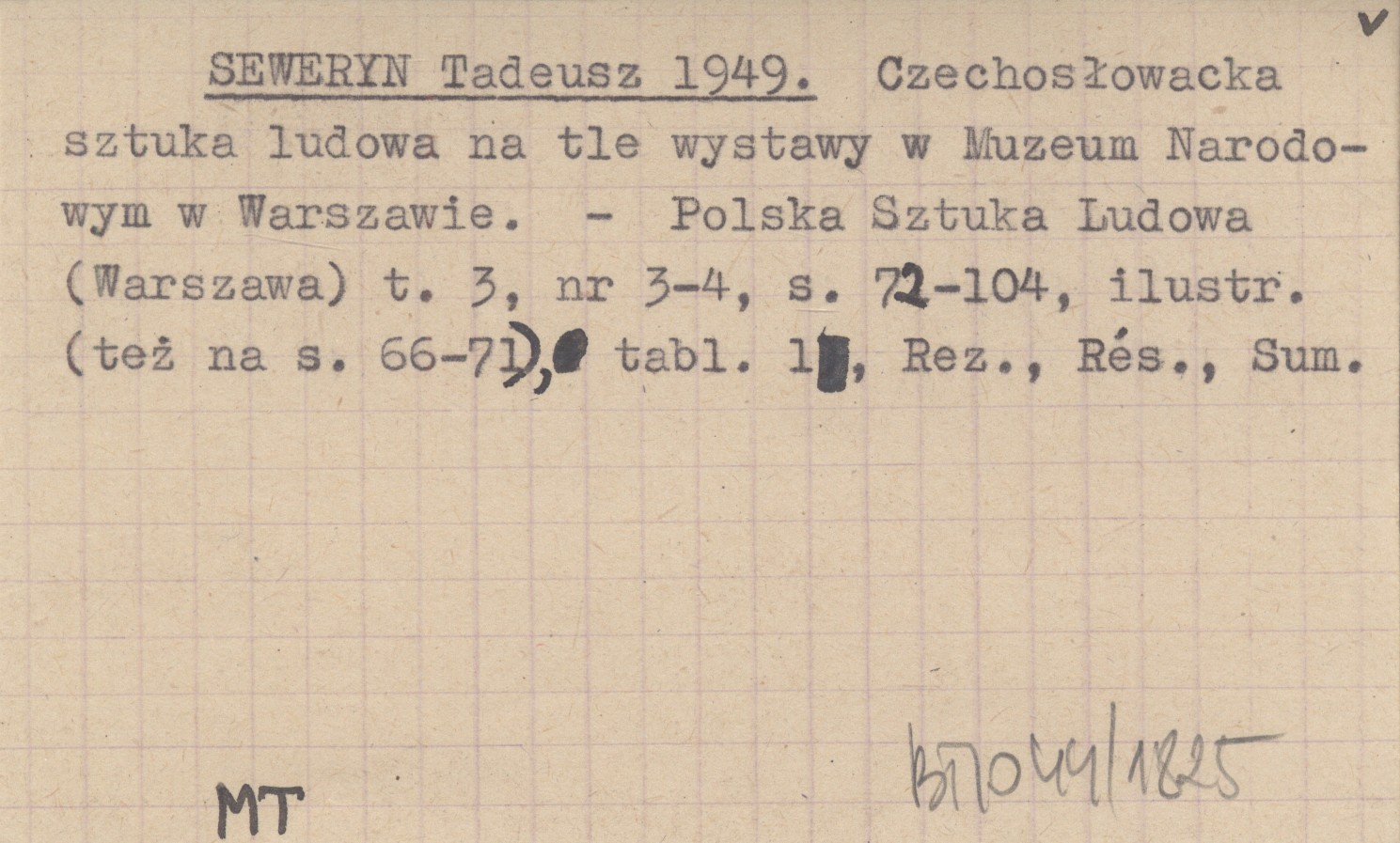 SEWERYN Tadeusz 1949 Czechosłowacka sztuka ludowa na tle wystawy w Muzeum Narodowym w Warszawie.