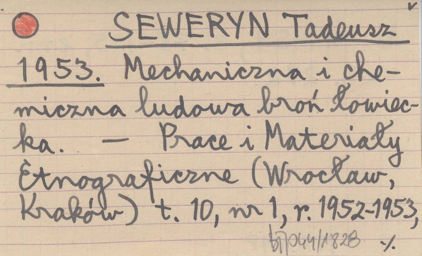 SEWERYN Tadeusz 1953 Mechaniczna i chemiczna ludowa broń łowiecka.
