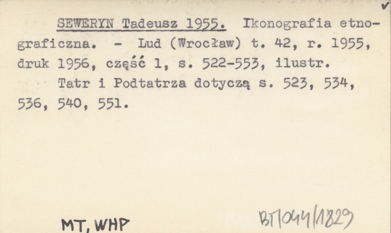 Lud (Wrocław) , T. 42 (1955, druk 1956), cz. 1: 522-553, il. Tatr i Podtatrza dotyczą s. 523, 534, 536, 540, 551.