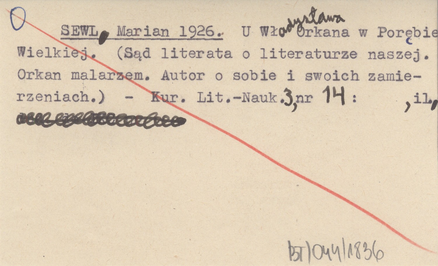 SEWL Marian 1926 U Władysława Orkana w Porębie Wielkiej. (Sąd literata o literaturze naszej. Orkan malarzem. Autor o sobie i swoich zamierzeniach).