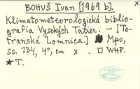 Klimatometeorologická bibliografia Vysokých Tatier.