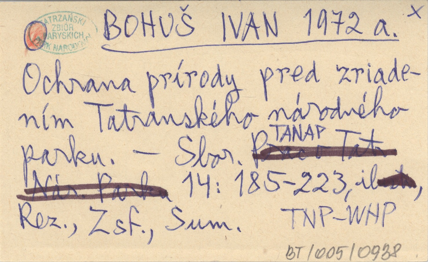 BOHUŠ Ivan 1972 a Ochrana prírody pred zriadením Tatranského národného parku.