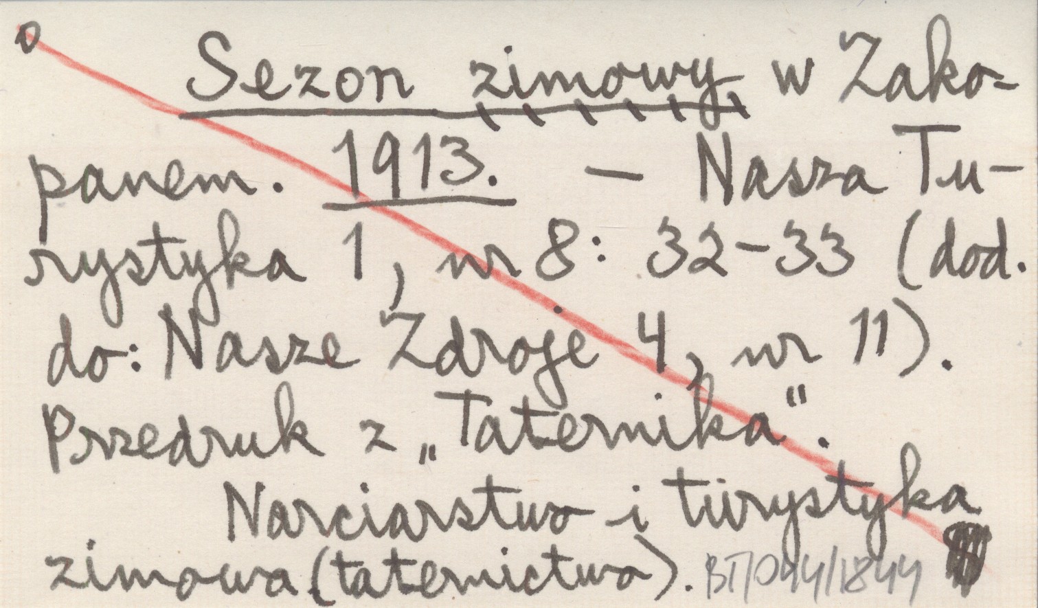 Nasza Turystyka (dod. do: Nasze Zdroje 4, nr 11)., 1, nr 8: 32-33. Narciarstwo i turystyka zimowa (taternictwo). Przedruk z "Taternika".
