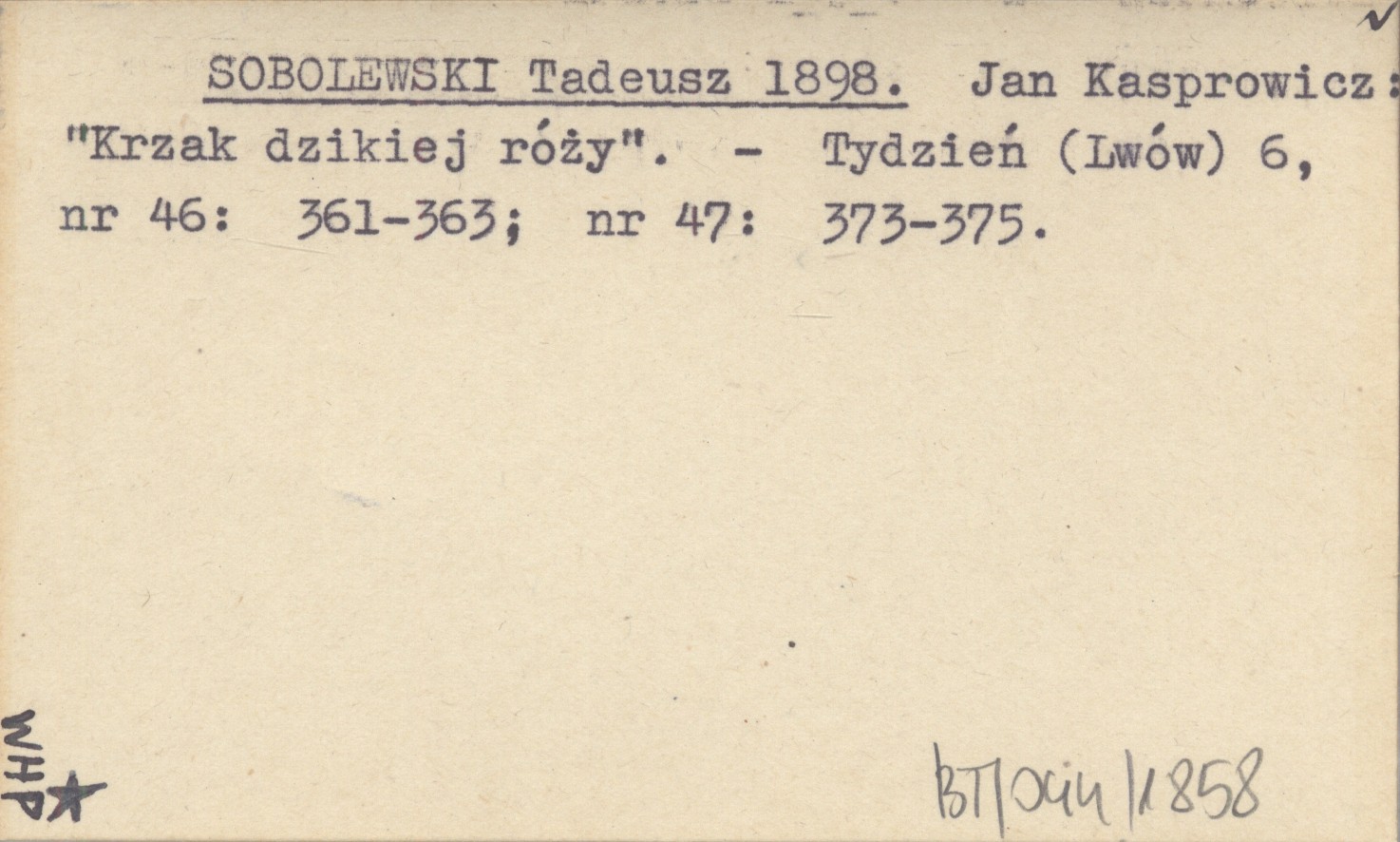 SOBOLEWSKI Tadeusz 1898 Jan Kasprowicz: "Krzak dzikiej róży".