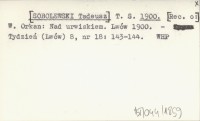 T. S. [SOBOLEWSKI Tadeusz] 1900 [Rec. o:] W. Orkan: Nad urwiskiem. Lwów 1900.