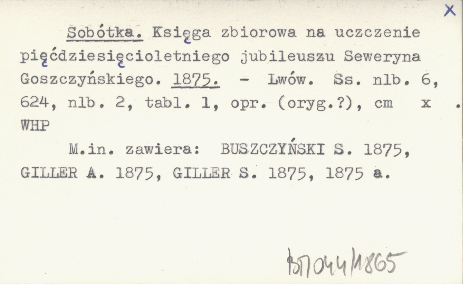 Lwów , [6], 624, [2] s., 1 k., opr. M. in. zawiera: BUSZCZYŃSKI S. 1875, GILLER A. 1875, GILLER S. 1875, 1875 a.