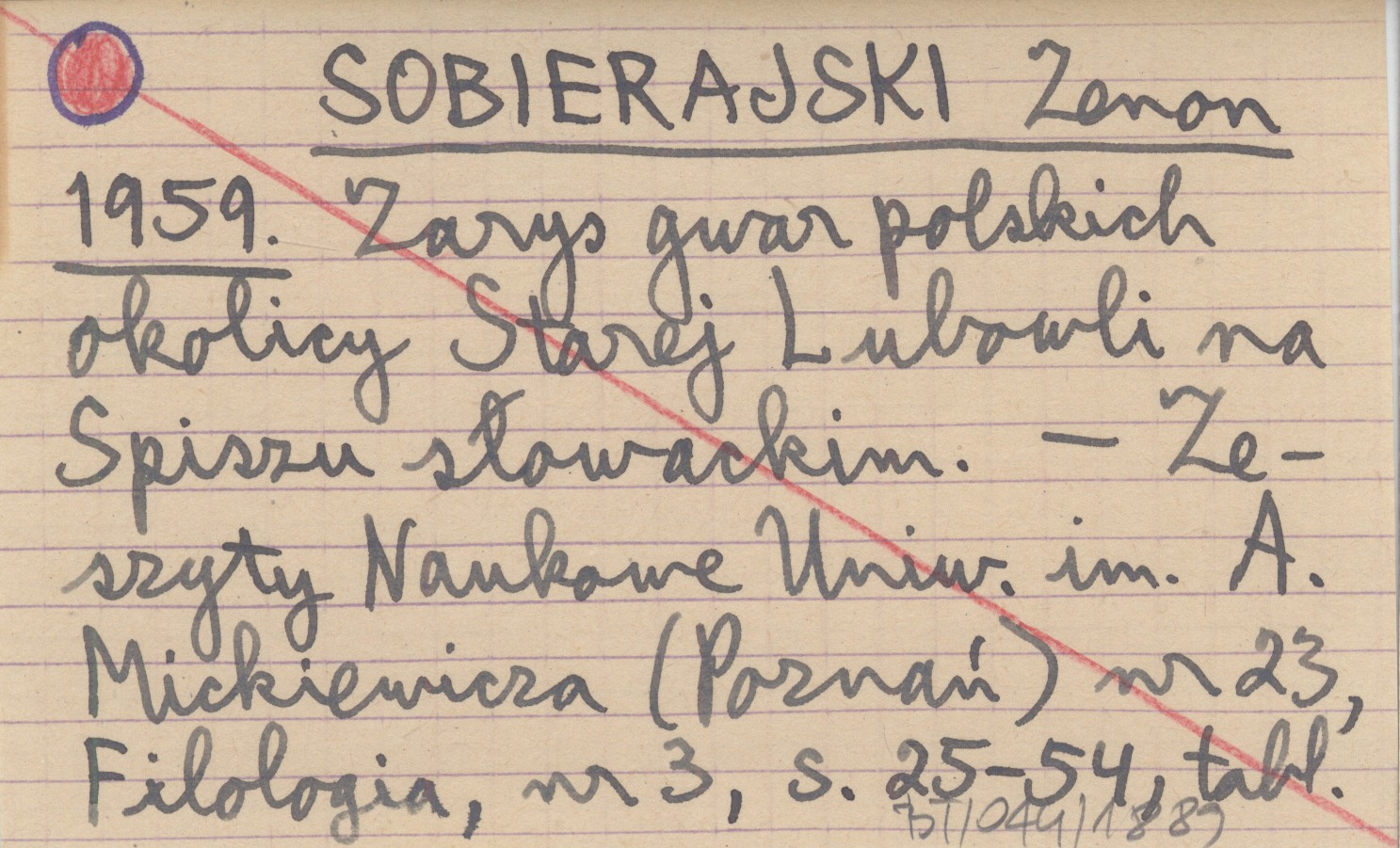 SOBIERAJSKI Zenon 1959 Zarys gwar polskich okolicy Starej Lubowli na Spiszu słowackim.