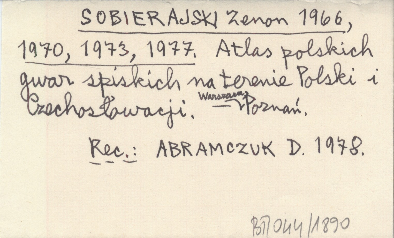 SOBIERAJSKI Zenon 1966... Atlas polskich gwar spiskich na terenie Polski i Czechosłowacji.