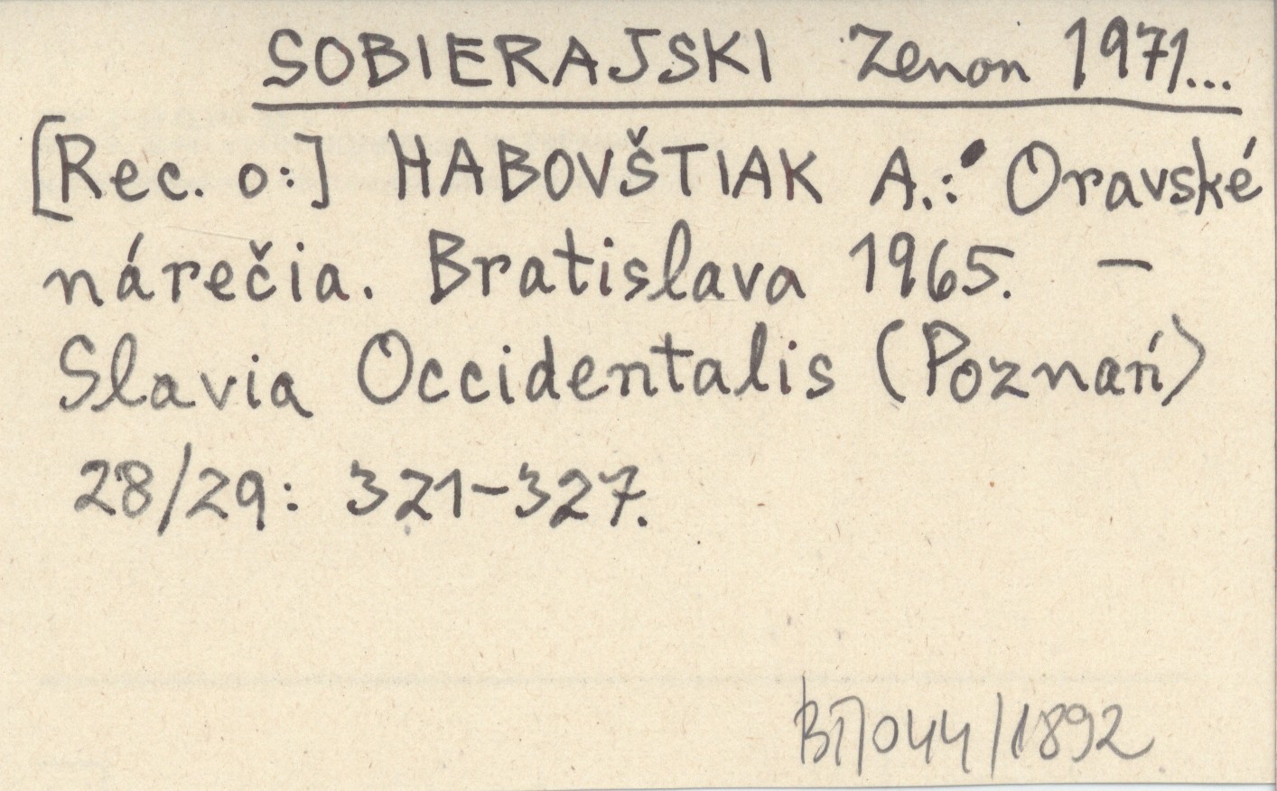 [Rec. o:] HABOVŠTIAK A.: Oravské nárečia. Bratislava 1965.