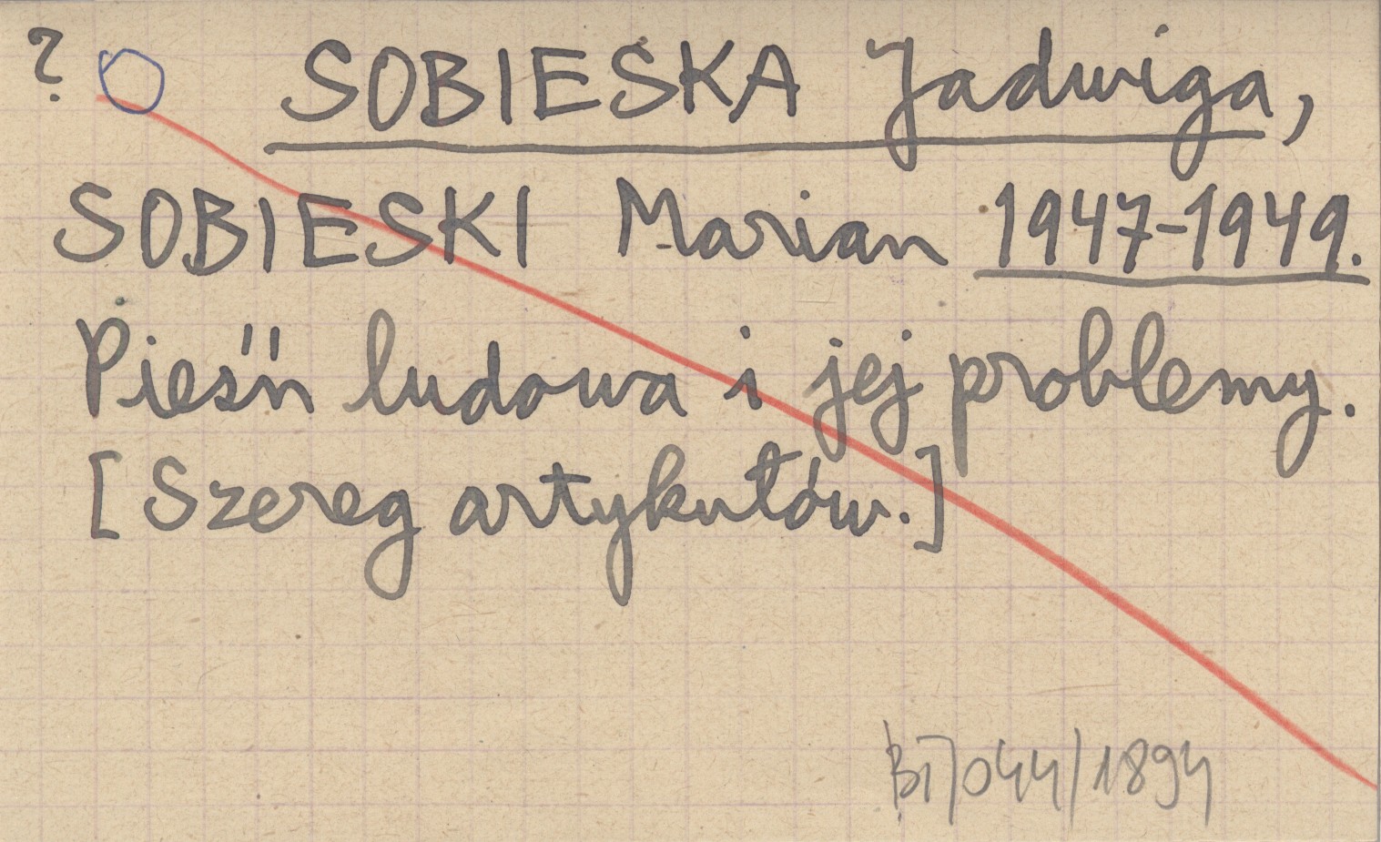 SOBIESKA Jadwiga SOBIESKI, Marian. ; 1947-1949 Pieśń ludowa i jej problemy.
